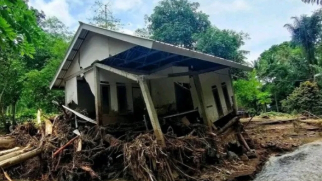 Selain itu, rumah korban tepat berada di pinggir aliran sungai yang mengakibatkan rumah diterjang aliran sungai. “Bangunan rumah ini tepat berada di aliran sungai, sehingga itu yang membuat bangunannya rusak parah,” katanya.